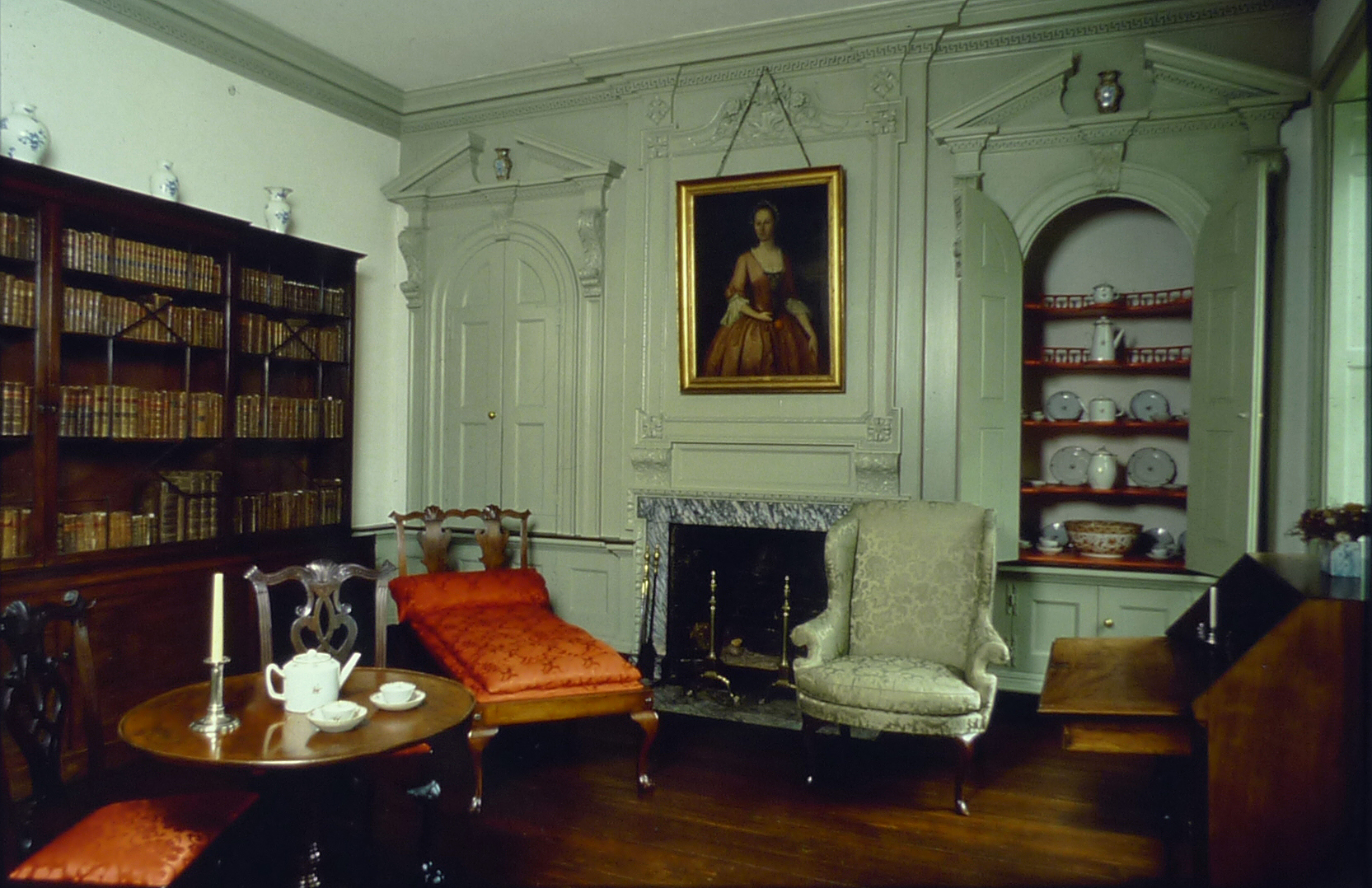 The last century of furnishing plans for the drawing room is an interesting topic but information about how it was used before 1900 is scarce. Martha Halpern discovered a wealth of information about the maintenance of, and day to day life at Mount Pleasant in the Jonathan William manuscripts in the Lilly Library, Indiana University, Bloomington, Indiana. The William’s family owned and lived at Mount Pleasant from 1792 to 1816. William’s account book contains entries for furniture purchases but whether every item purchased was intended for Mount Pleasant, and if so what room it was destined for is still a topic for research. No room by room inventory from the first quarter of the nineteenth century has yet turned up. A tantalizing document in the Archives at the Philadelphia Museum of Art describes the late Marion Carson, in 1985, criticizing the installation of the drawing room, at that time called the “great chamber”, saying it never was a bedroom. It was suspected at the time that Carson, at one time married to a descendent of Captain Macpherson, was in possession of an inventory of the house taken in the 1770’s when Macpherson anticipated and ultimately did, rent the main house for the summer. Carson intimated that the “great chamber” may have been Margaret Macpherson’s morning room or sitting room. It was eerie reading this reference in 2010, four years after, without knowing of this reference, the Museum reached the same conclusion. Carson’s voluminous archives, although perhaps not her complete collection, are housed at the Library of Congress. Does the inventory actually exist? There’s another research topic that needs to be pursued!