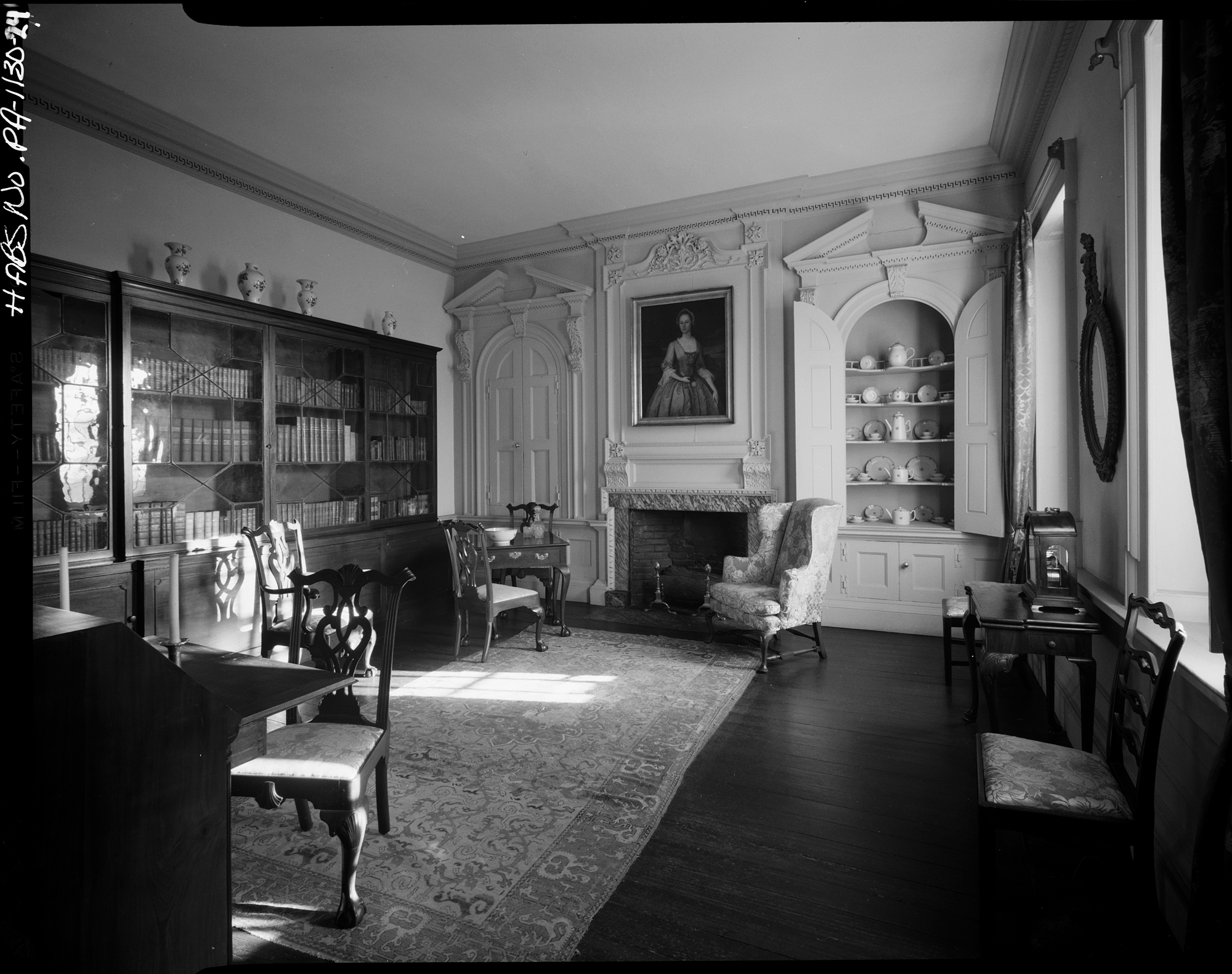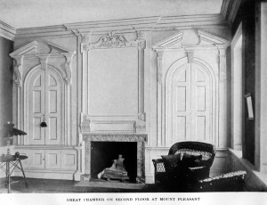 “The Colonial Homes of Philadelphia and Its Neighborhood”, Eberlein and Lippincott, 1912. This is believed to be the earliest image of the drawing room at Mount Pleasant.