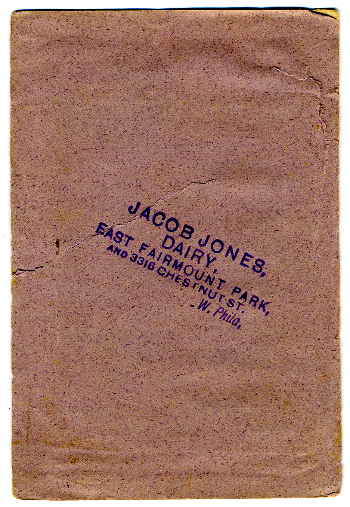 1. I have 7 tintypes from the Jacob Jones Dairy. two images are still in their paper frames with the cover sheet stamped by Jones. it also lists 3315 Woodland Ave, Bel, Chestnut, W. Phila in the stamping.