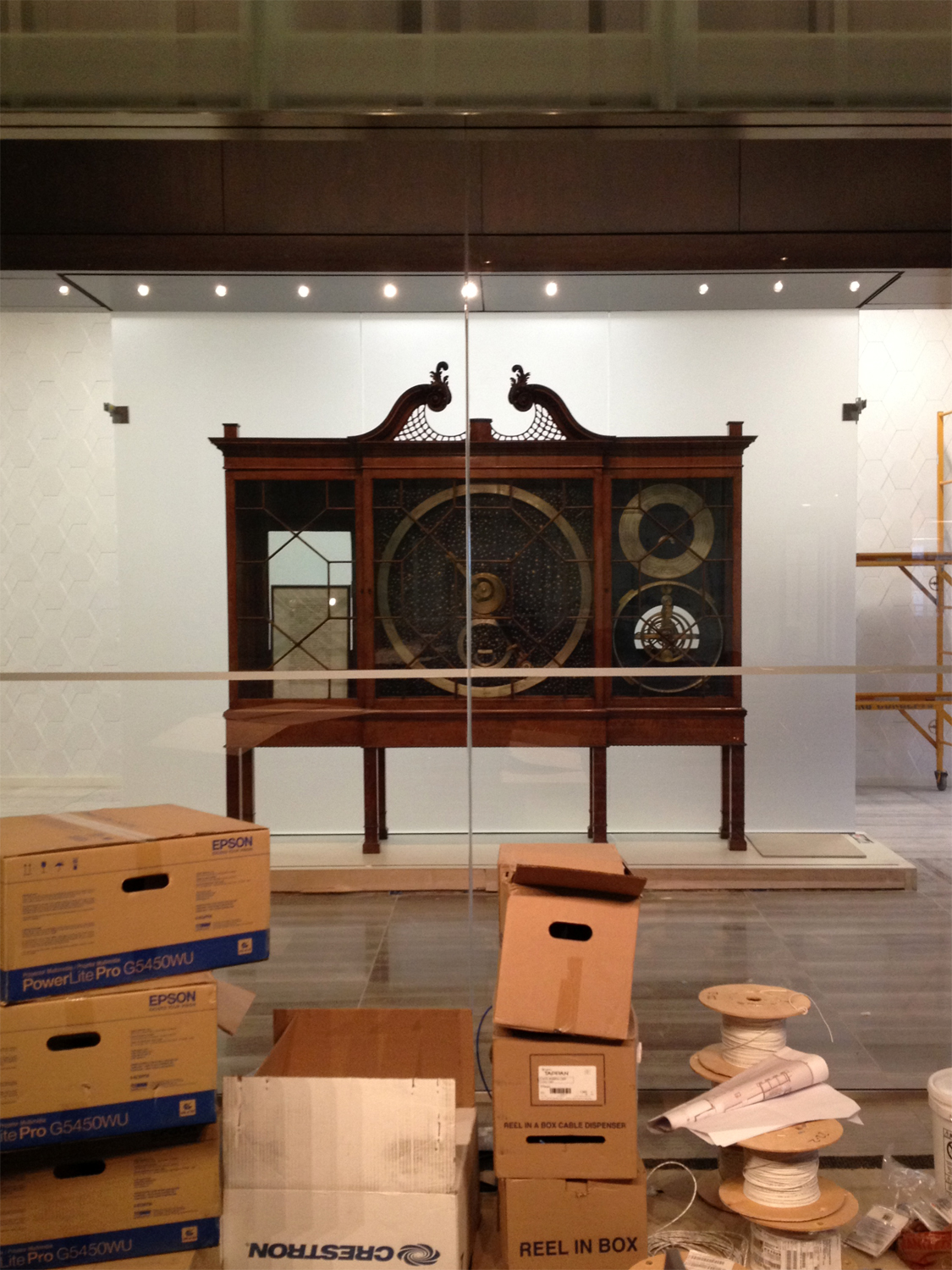 The Rittenhouse Orrery and case at the University of Pennsylvania in Philadelphia has been reinstalled on the sixth floor of the Van Pelt-Dietrich Library Center. The sixth floor will re-open to the public in early March 2013.