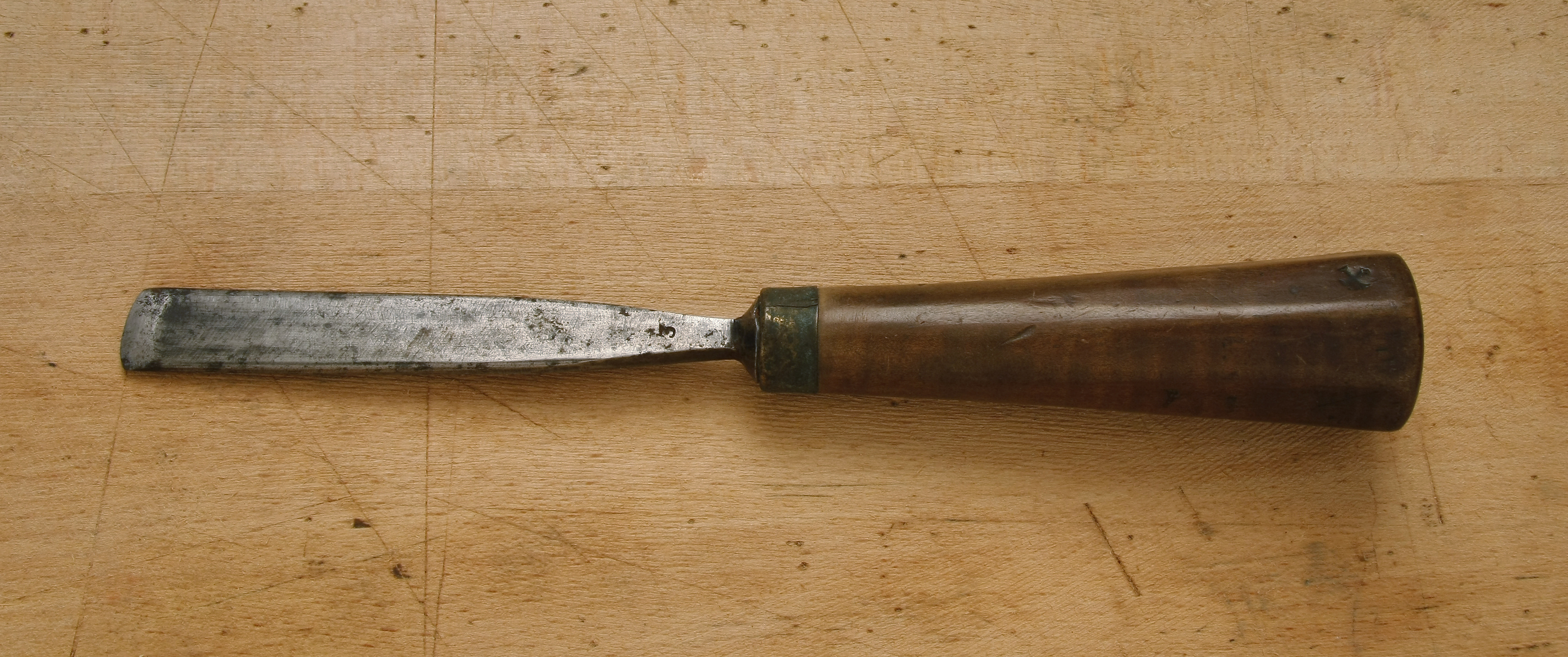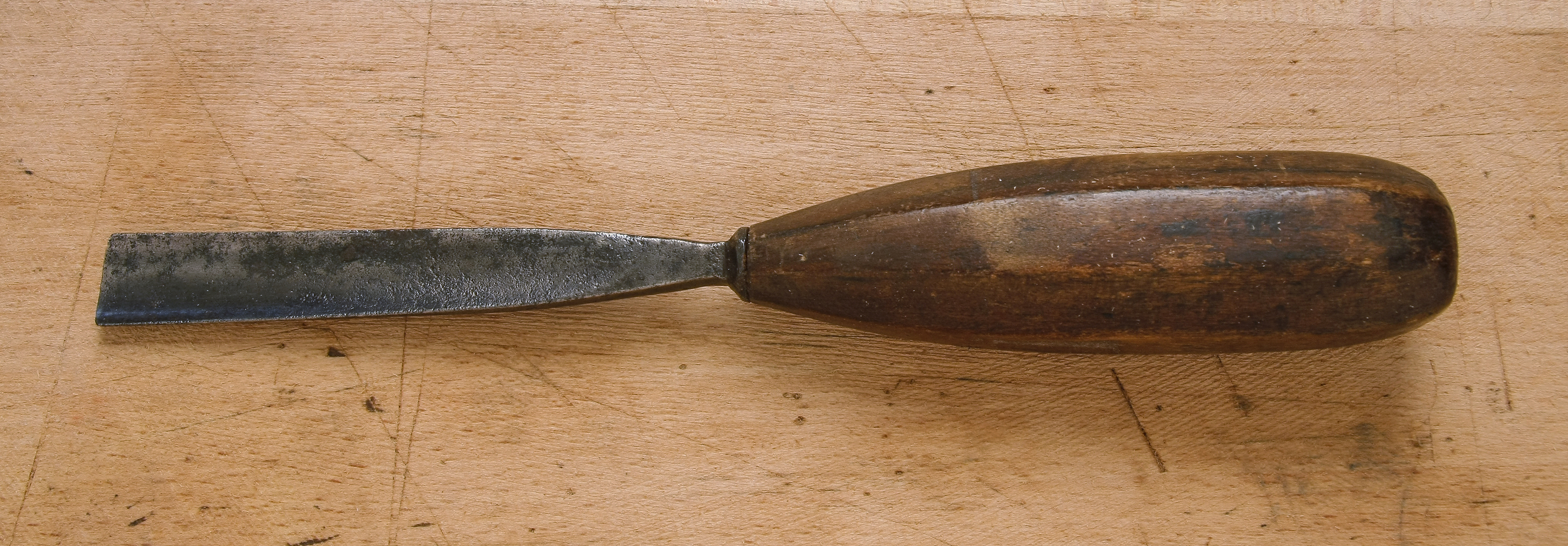 Addis gouge afterShaped and sharpened after years of neglect, I’m now working with both these carving gouges for the first time. They are not the length they were when forged in the 1870’s but they still have several generations of carver’s use in them. The handle on the gouge at the top of the photo below feels a bit short and the bulge and the end of the handle on the lower gouge makes subtle control a bit difficult. But they’ve been part of tools for some time, likely since the last professional carver used them and it’s possible they are original to the gouges. I won’t be modifying or replacing them with more comfortable handles.