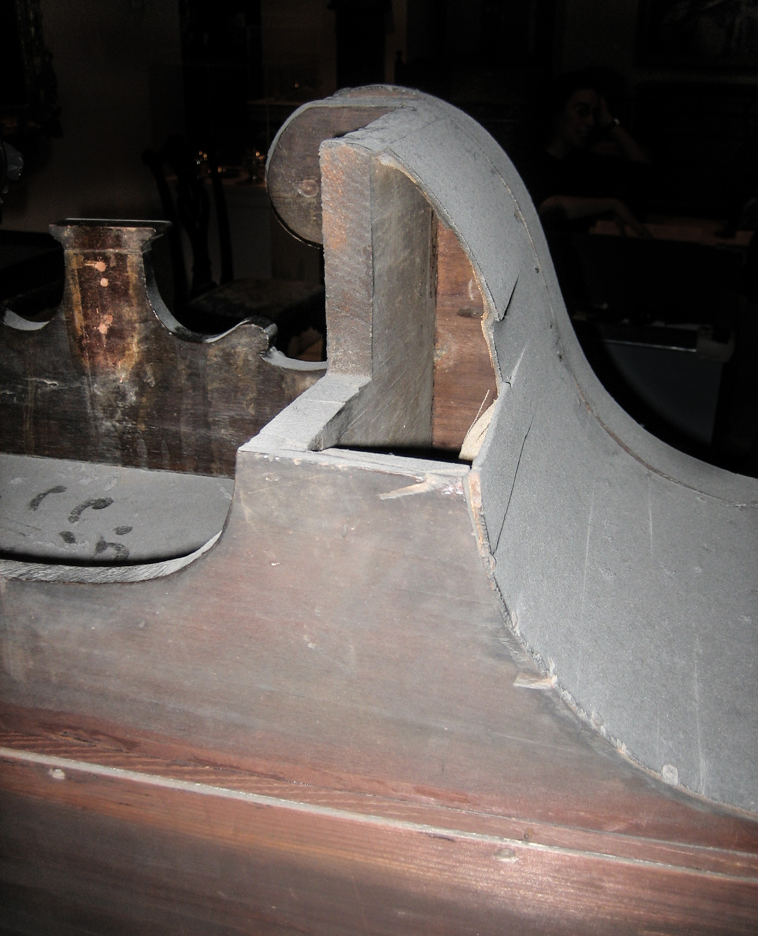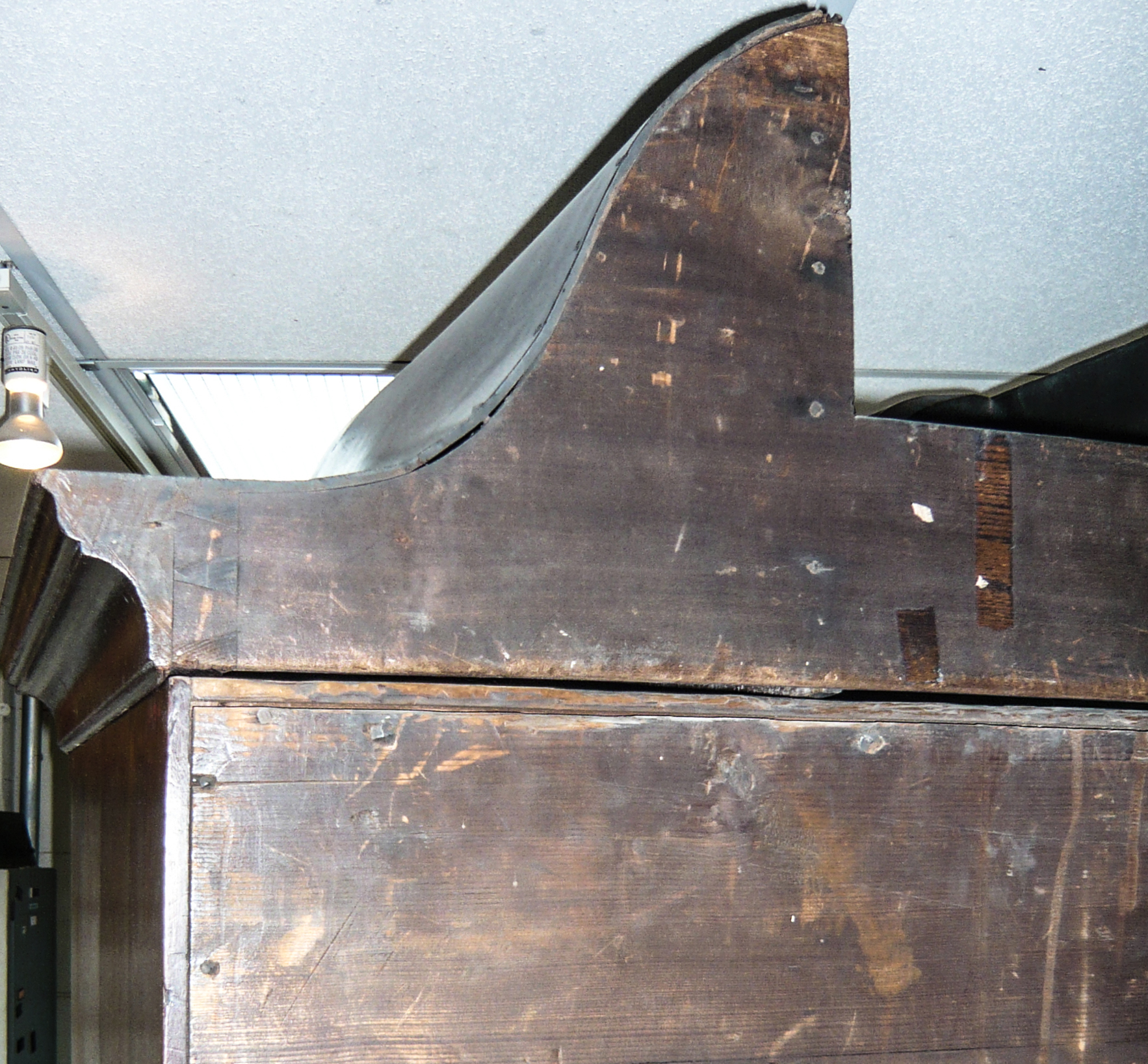 Unexpected interior views may occur when old tall furniture is moved into new short rooms, presumably with modern duct work in the corners where the walls meet the ceiling. It hurts to think that a woodworker who owned and knew how to use a saw could use it to this purpose.