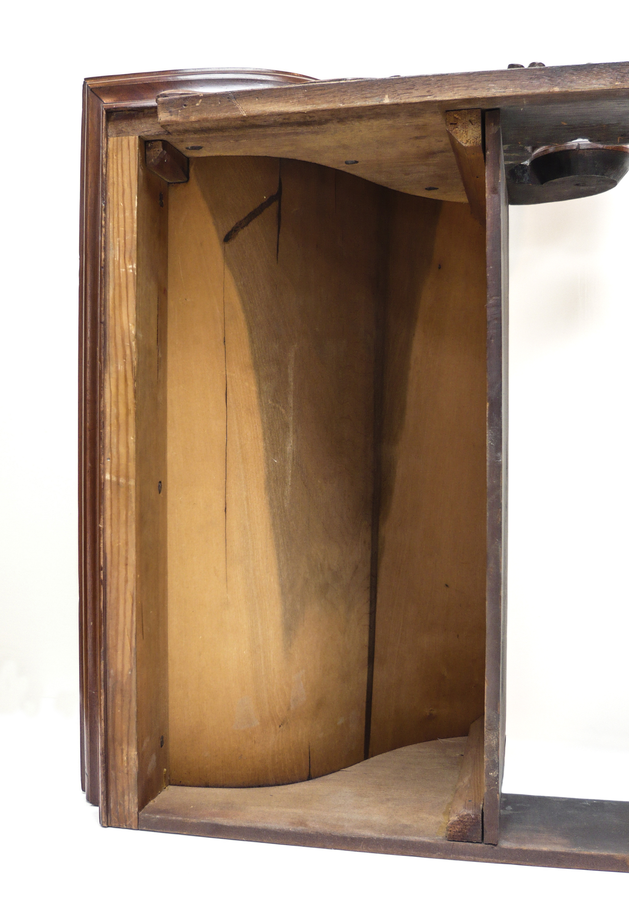 The scroll mouldings on the front of the top section are also nailed from inside through the tympanum board.