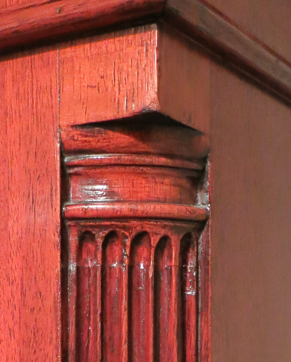 With the modern legs removed, the tenons of the front rail and sides are revealed. There are four separate tenons on the side board, the bottom tenon flush with the bottom of the side and the top tenon (the top tenon is cropped out of this photo) begins a half an inch below the top. … Continue reading Dressing Table Restoration, Part 3, Corners