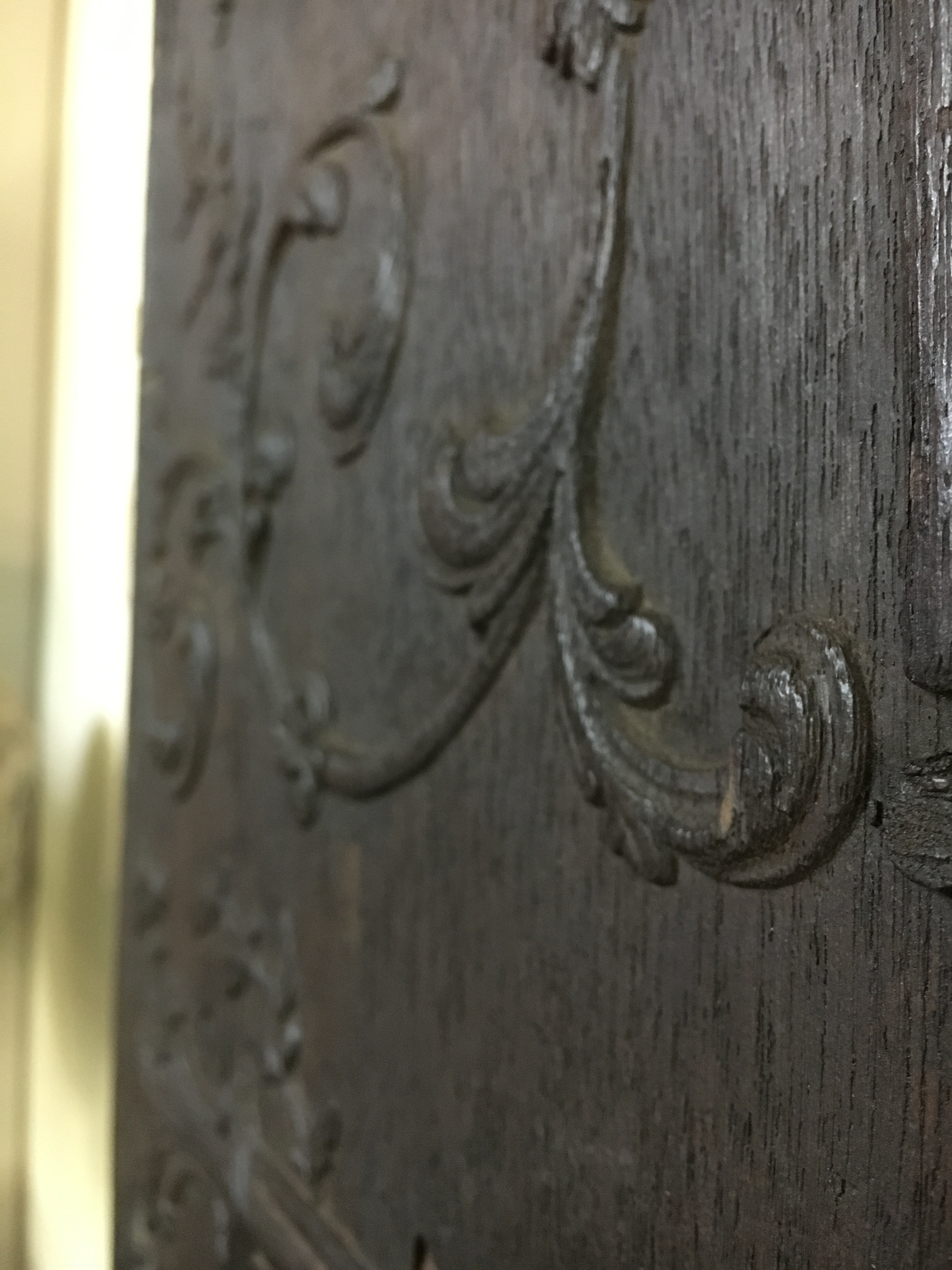 1. This is great, Chris. We don’t get to see something like this very often. How deep is the carving? Would they have relieved the background with with a router plane to get it level?