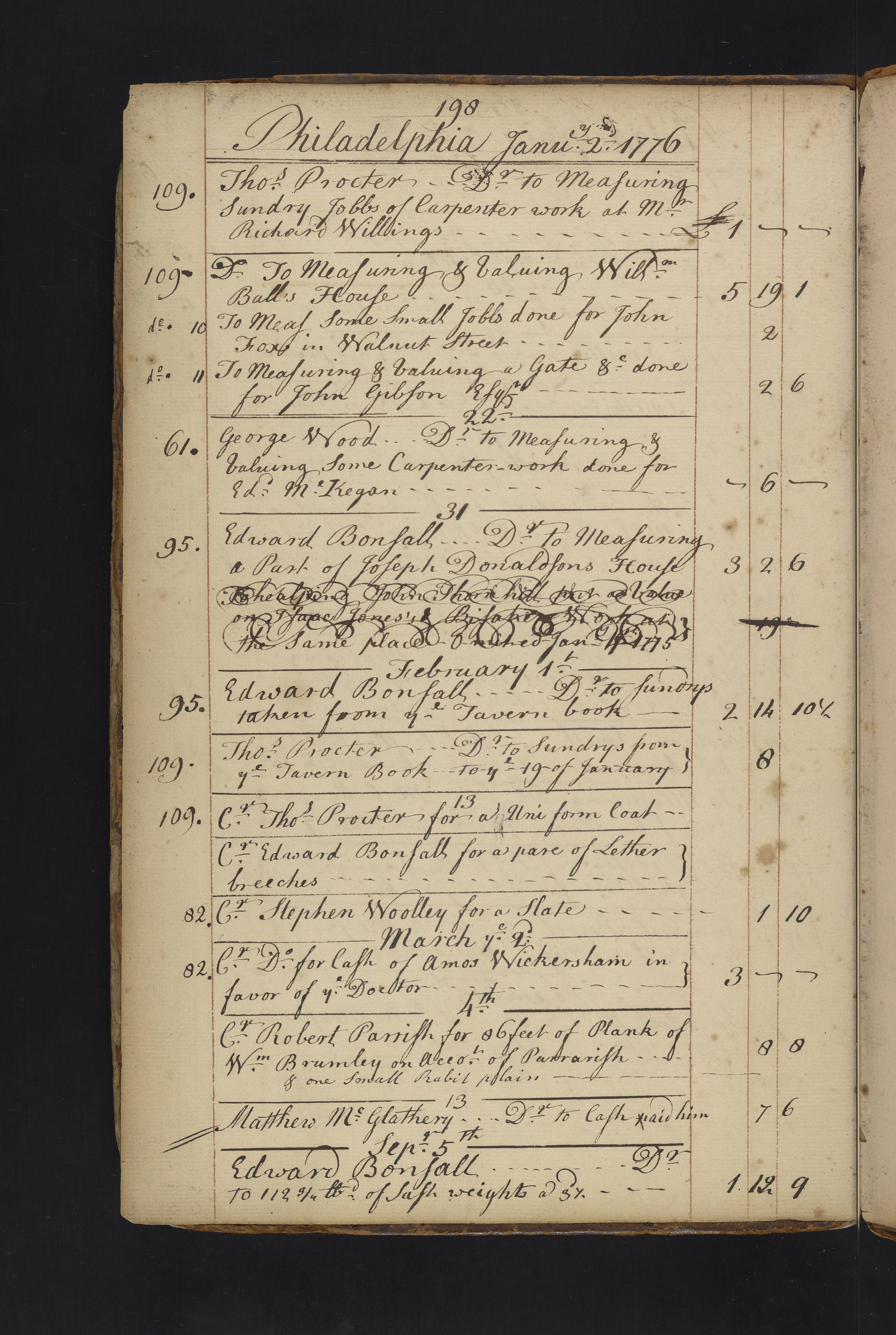 There is a gap in the entries in Nevell’s daybook from November 9, 1777, less than two months after the British Army began their occupation of Philadelphia, until January 12, 1780, when there is one entry, then another gap until August 16, 1782.