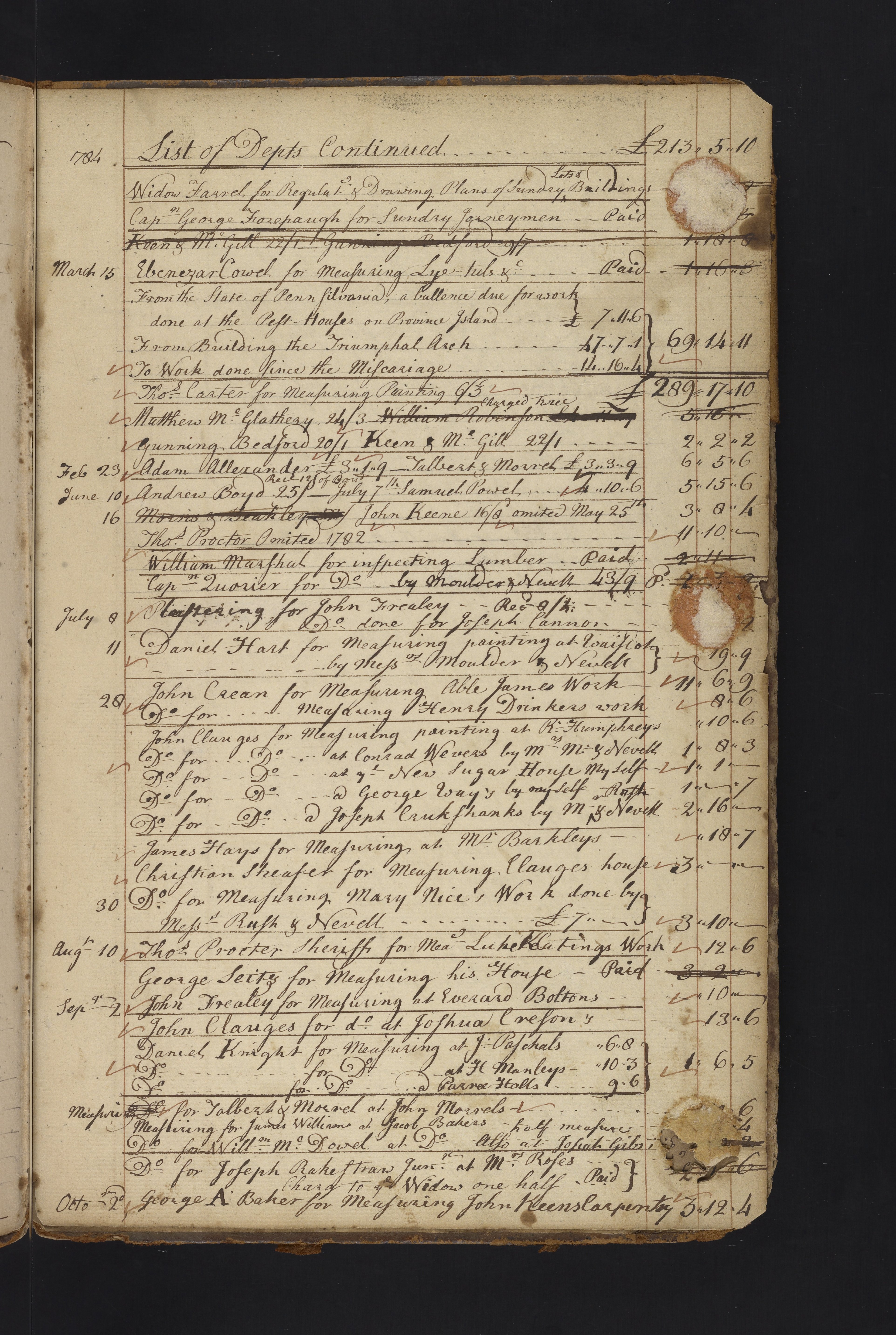 After the war the scope of Nevell’s business changed. He was 62 years old in 1783 and now began spending more time measuring other tradesmen’s work than on arduous building projects.