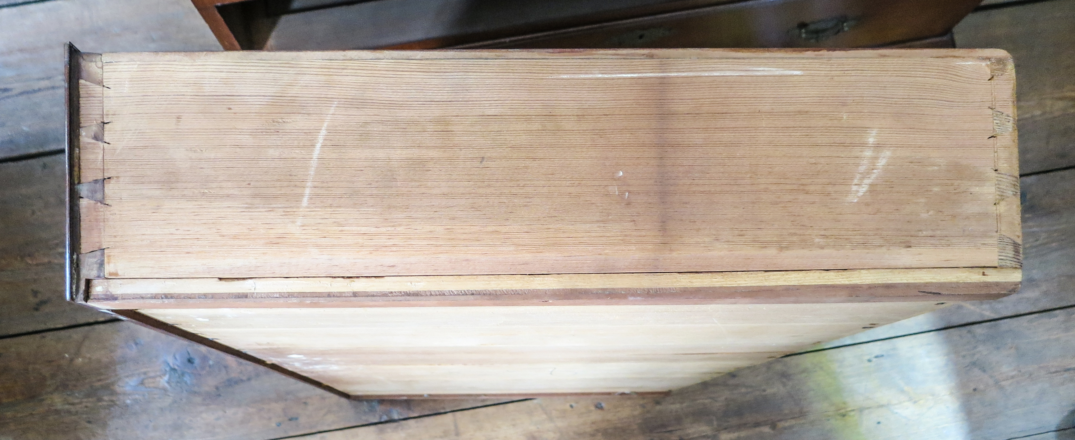 Chest of drawers. Made in Philadelphia, c. 1735. The fine quality of hard pine available in the early eighteenth century is seen in this drawer side. It is cut from a tree that grew very slowly and perfectly straight.