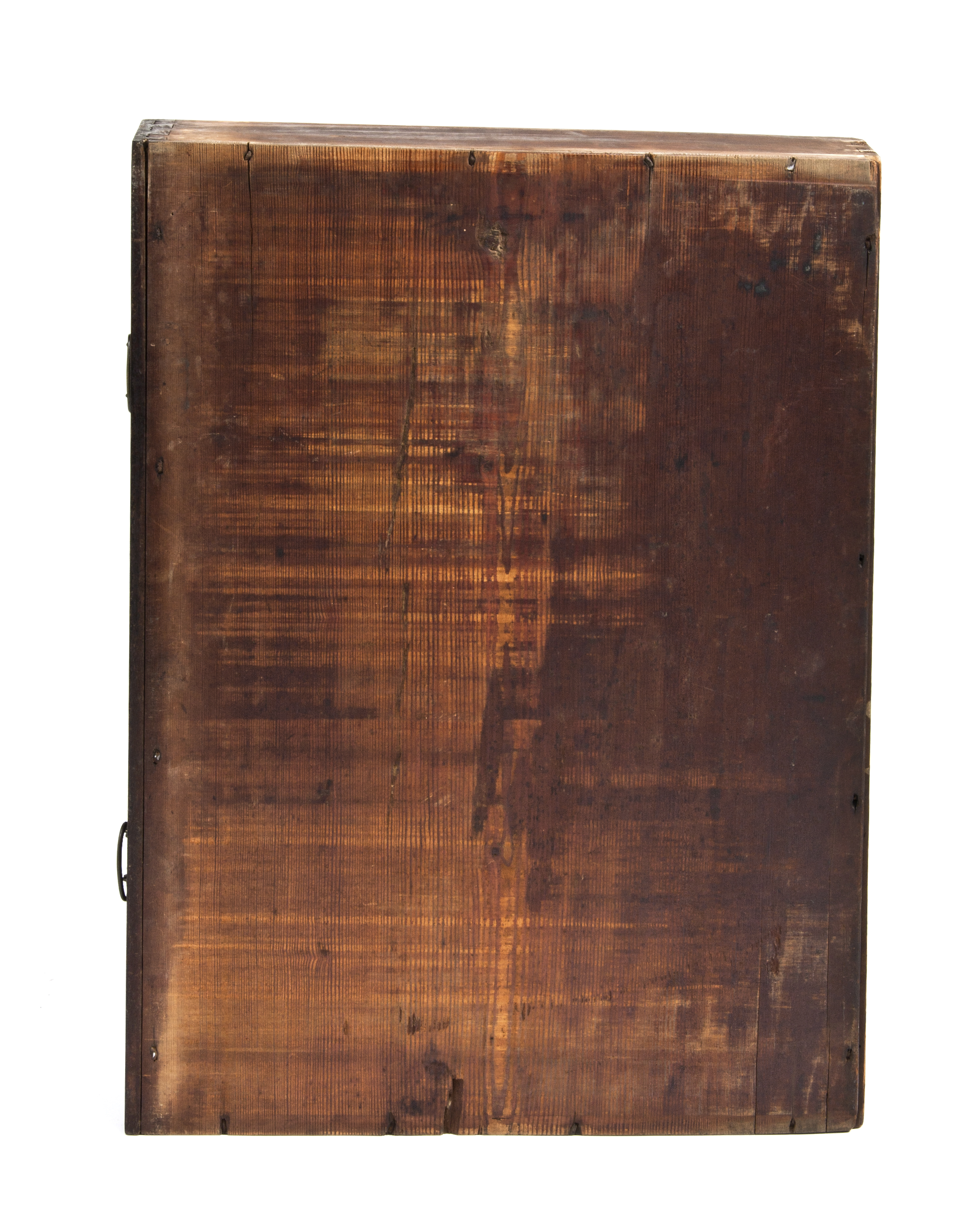 Spice box. Made in Southeastern Pennsylvania, c. 1760. Black walnut, Atlantic white cedar, yellow poplar. The linings of small drawers were sometimes made entirely of riven white cedar. The demand today – from customers, collectors, gallery owners, and furniture makers themselves – to produce highly finished surfaces inside and out means we are unlikely to see this type of surface topography coming out of contemporary makers shops.