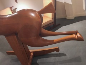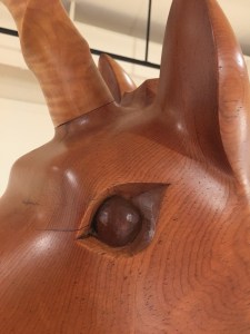 Dan must have come to know this history and was moved to create a carousel animal in his own terms. It does not move up and down on a pole or revolve on a pedestal but it is given movement through its rockers. Like the Dentzel carousel animal carvings it is both sculptural and functional. It is unpainted and the exceptional knowledge of material and lamination and joinery technique is on full display. Now 43 years old, it remains in perfect condition. There is not one split in the numerous laminations. It is worth the effort to see it in person – and make sure you watch it rock.