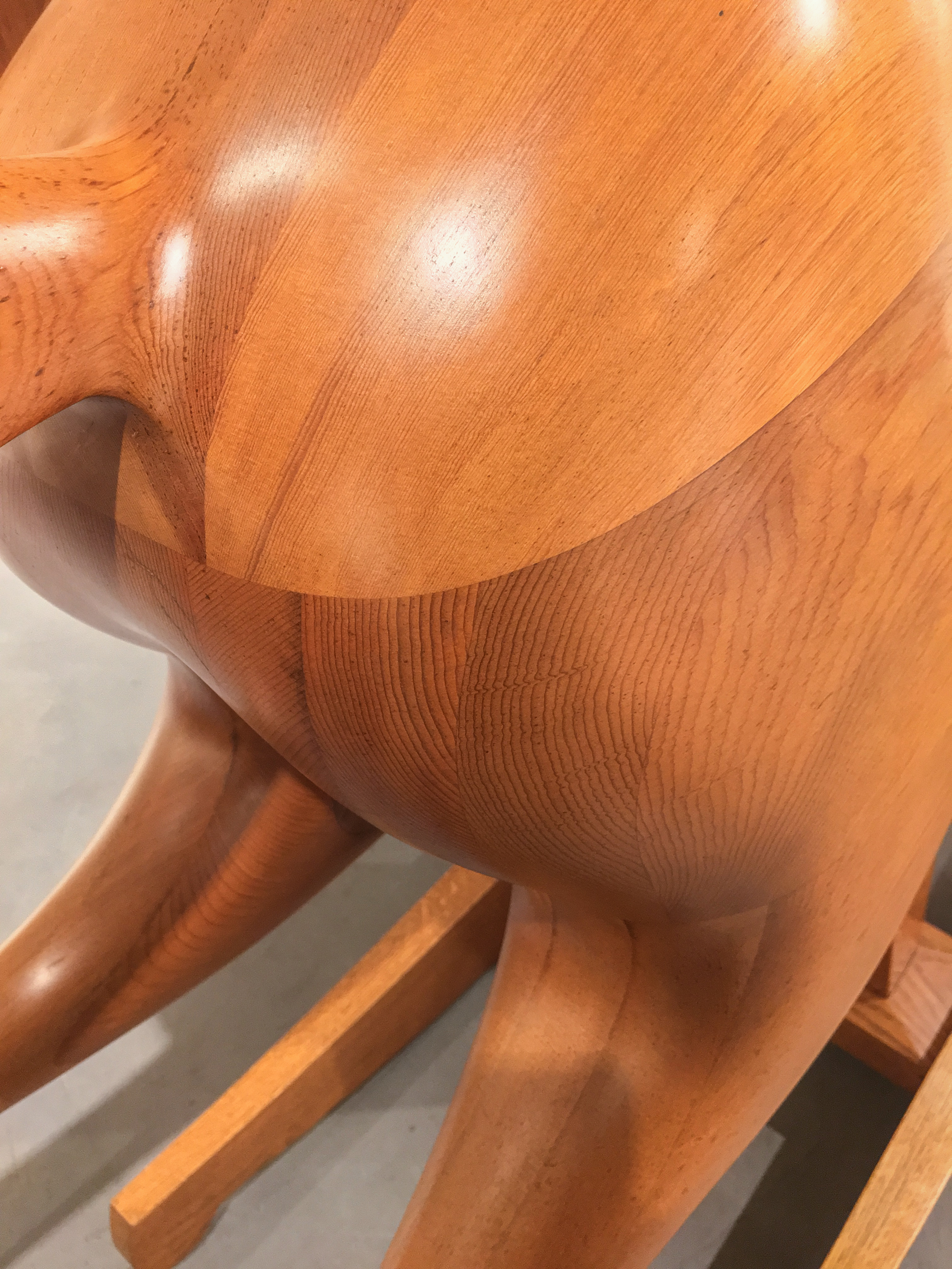 Dan must have come to know this history and was moved to create a carousel animal in his own terms. It does not move up and down on a pole or revolve on a pedestal but it is given movement through its rockers. Like the Dentzel carousel animal carvings it is both sculptural and functional. It is unpainted and the exceptional knowledge of material and lamination and joinery technique is on full display. Now 43 years old, it remains in perfect condition. There is not one split in the numerous laminations. It is worth the effort to see it in person – and make sure you watch it rock.