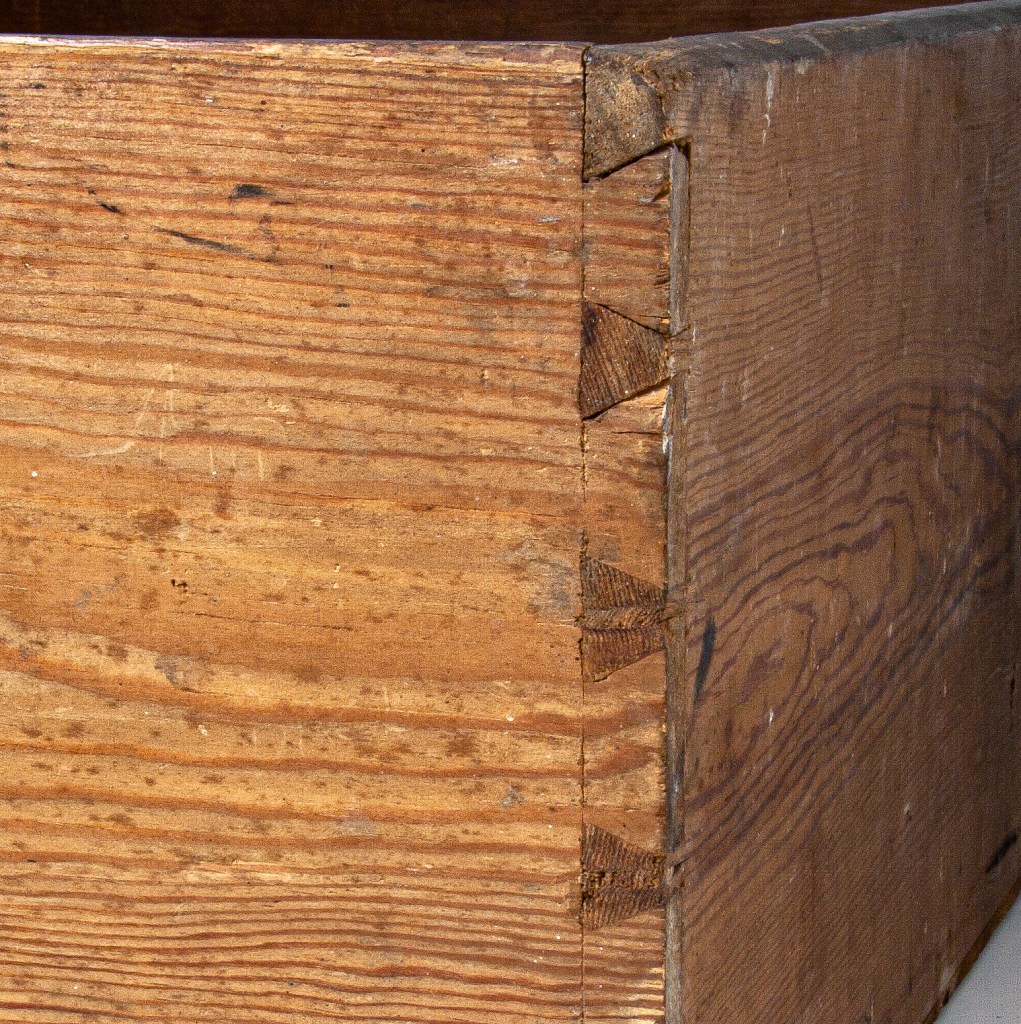 They certainly are prevalent in furniture made by German immigrants and their descendants – think of all the eighteenth century paint decorated blanket chests – but wedged dovetails can also be found in furniture made in France and furniture made by English immigrants in America.