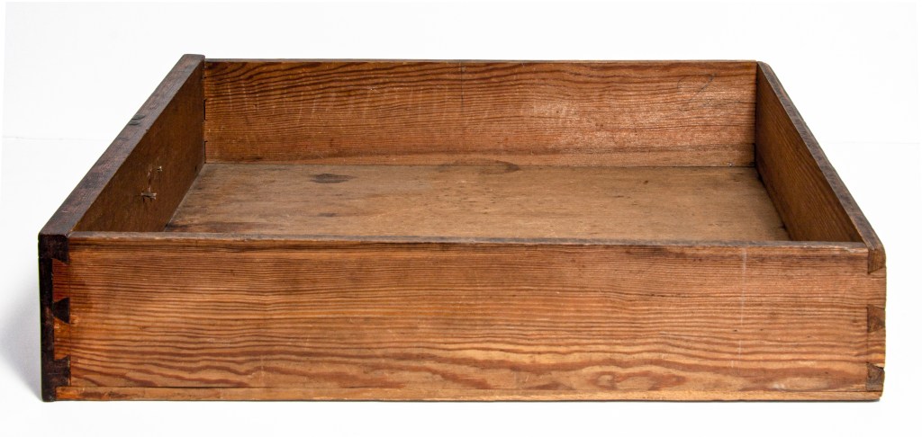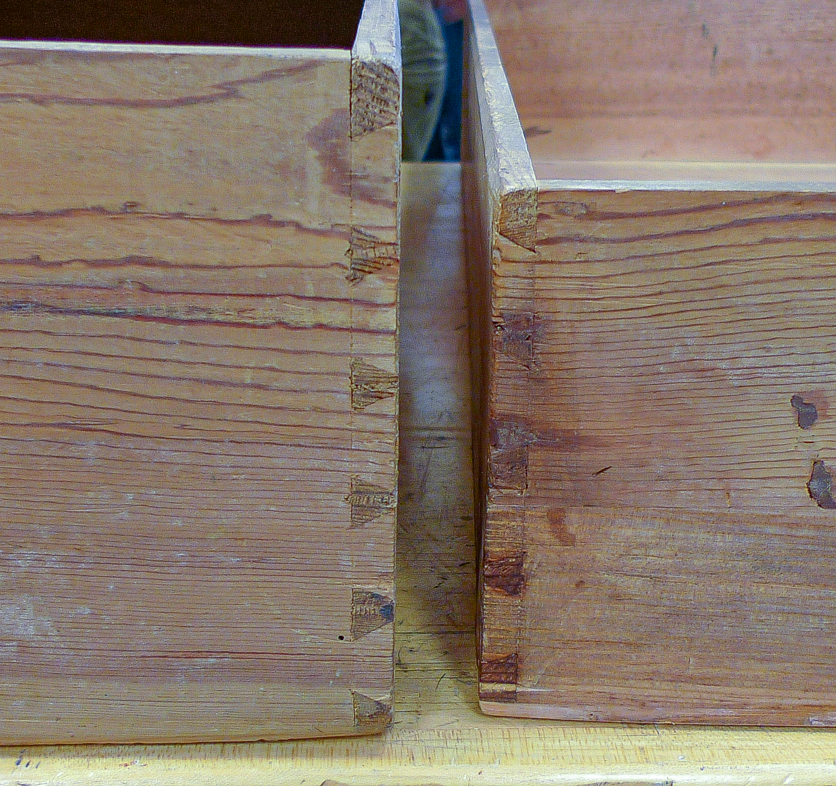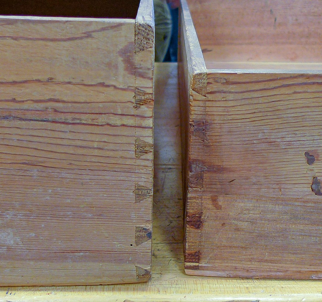• Thank you. And thanks for your insight into wedged dovetail joints in English/Irish work. In America, it is generally accepted that wedged dovetails have never been observed in furniture made in New England. I also believed this to be true, I had never come across any, and I had been looking. But I recently found a chest documented to a known Boston maker that used wedged dovetails in the upper carcase. I intend the next post to be a brief intro to dovetail wedging, though it is a larger story than I can reasonably do in a blog post. And we don’t have all the answers, if we ever will.