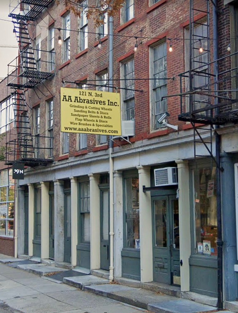 The Center for Art in Wood’s location at 141 North 3rd Street in Philadelphia was once surrounded by cabinet and chairmaking shops in the eighteenth and early ninteenth centuries. The area continued to house small independent shops and suppliers to the woodworking trades into the twenty-first century. But little of that history remains. AA Abrasives, Inc. at 121 North Third Street is one of the last remaining businesses catering to the wood trade (as well as metalworkers, etc.)