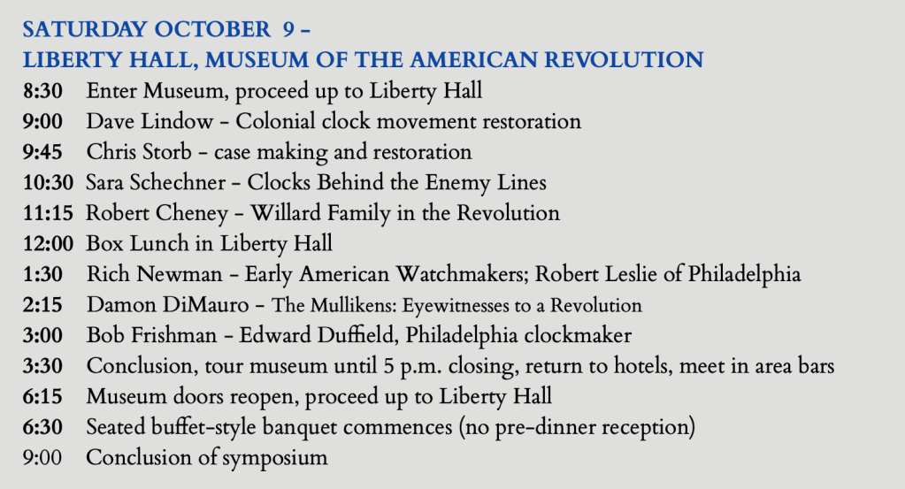 “A full roster of eminent speakers has been recruited” reads the press release, however awkward it makes one feel to be so described. I’m speaking on clock case making in colonial Philadelphia. The schedule for the symposium is now online.