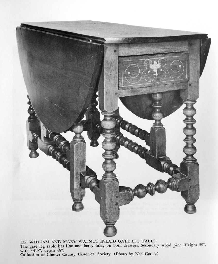 If any of the objects in this post (except the third image of the Chester County chest from Winterthur) were without inlay, I believe they would all be attributed to Philadelphia due to the secondary wood species used in their construction. (More properly they should be attributed to the Delaware River Valley.) But current marketplace thought moves the attribution to Chester County when line and dot inlay is present. There are several reasons for this, but I think it is in the interest of furniture history that we examine preconceived opinions to have a greater understanding of furniture making as practiced in the Philadelphia area.