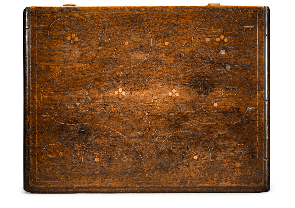 Top of a box. Delaware River Valley, 1710-1730. Winterthur Museum and Gardens.