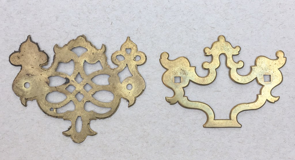 Dave also cast the posts and handles for the four pulls I needed for the dressing table and filed the edges of the plates, which in this case was complicated by the elaborate piercings. It’s a striking pattern I haven’t seen on another American object.