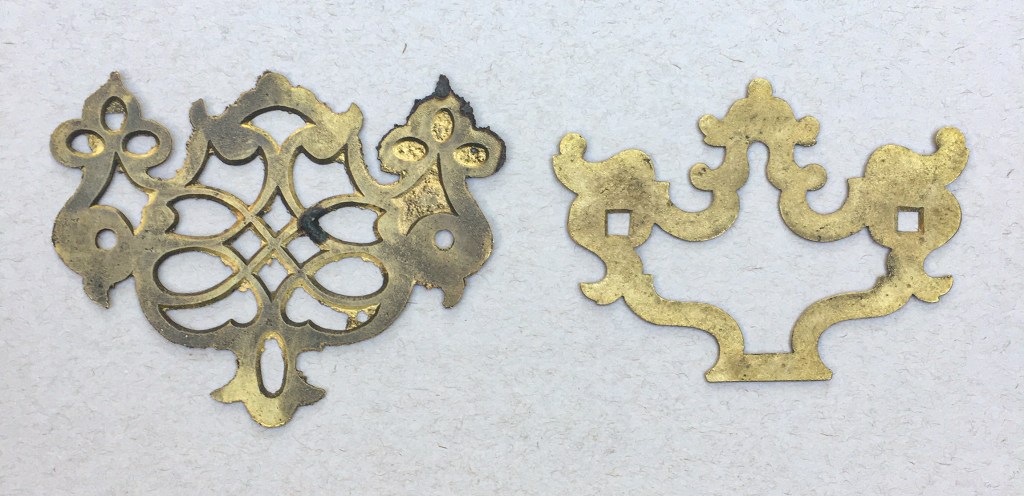 I was asked in a comment on the previous post where I acquired the brass plates and handles to match the one original surviving escutcheon and the witness marks from the original handles on the dressing table to be sold at Sotheby’s in January, 2022. It jogged my memory that I had not written a post about the handles as I had intended when working on the series about the restoration of the dressing table. This then is Part 5.