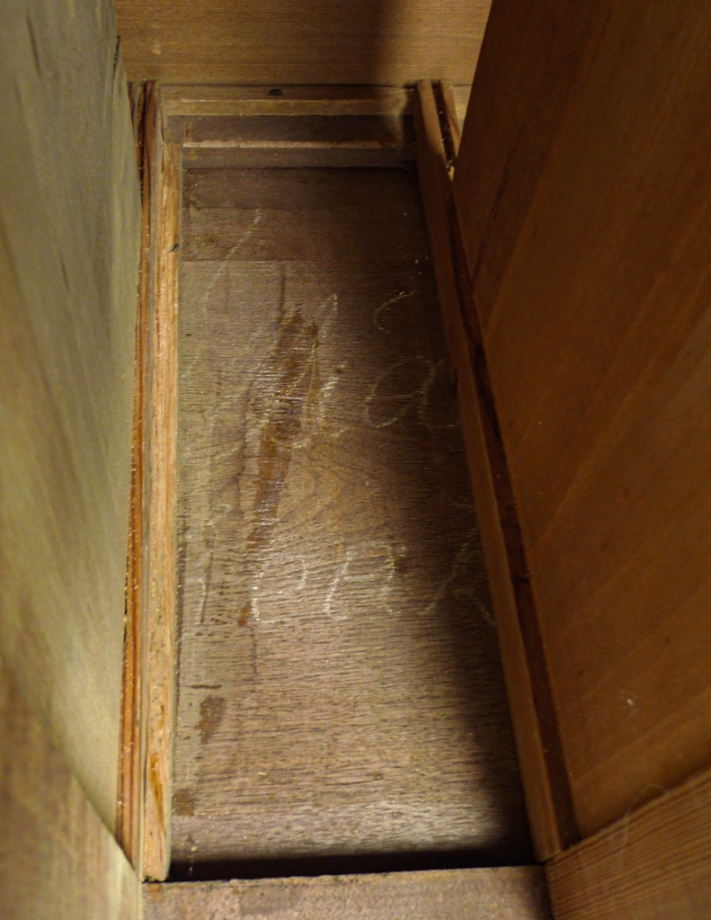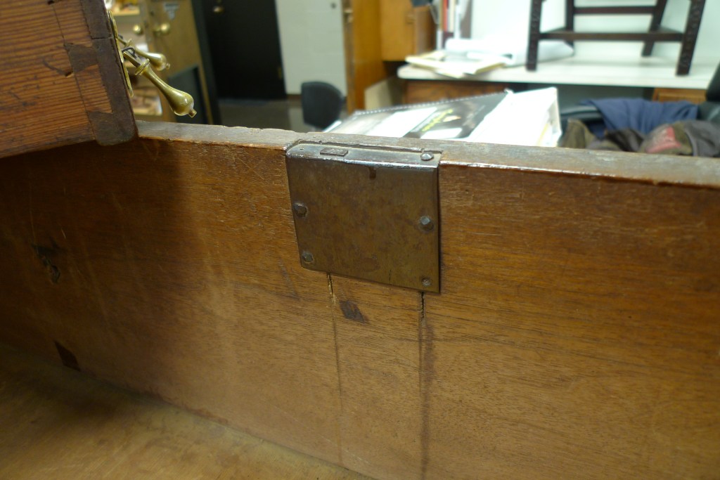 It is very difficult to photograph the chalk inscription due to its location. Here is a selection of my images of the chest from 2014 before it was installed in the Winterthur gallery.