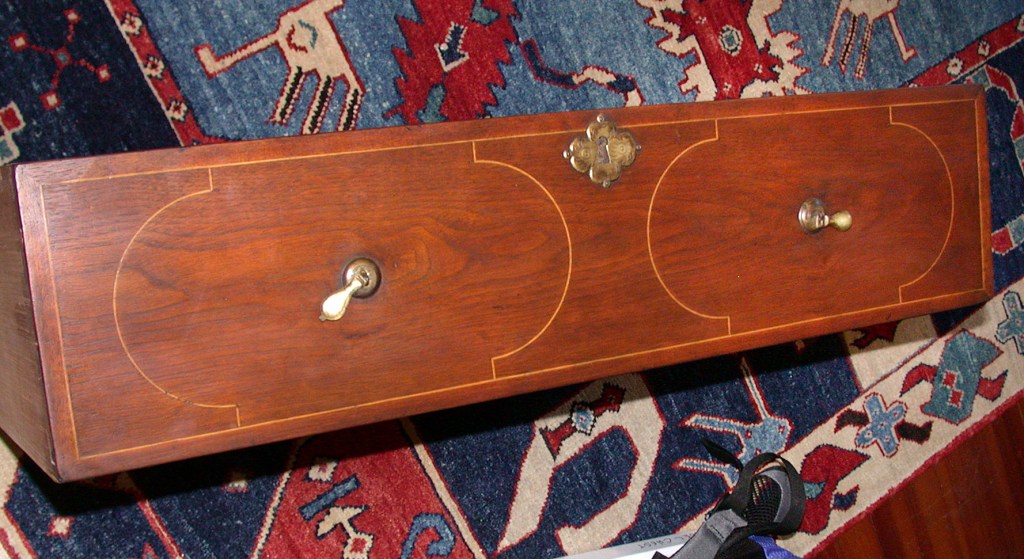 Chest of drawers with lightwood stringing. Black walnut, red cedar, Atlantic white cedar. Southeastern Pennsylvania, possibly Philadelphia. Private collection. Drawer from previous chest.