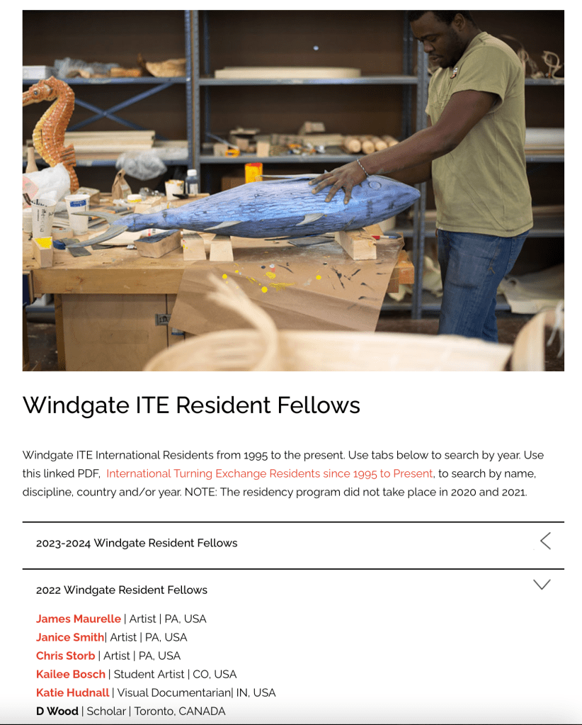 I am excited to tell you I will be a Windgate ITE Resident Fellow at the Center for Art In Wood this summer. I look forward to joining fellows James Maurelle, Janice Smith, Kailee Bosch, Katie Hudnall, and D. Wood June 13 through August 5, 2022. We will be working at NextFab North. There will be an open studio day July 9 and an exhibition at the Center for Art In Wood from August 5 through October 16 of work produced during the residency.