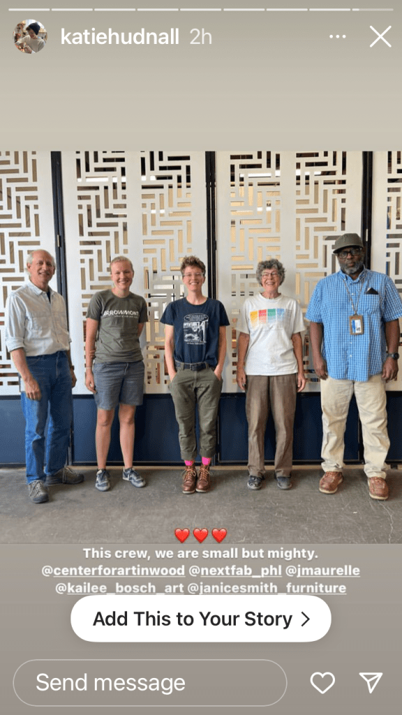 It has been a wonderful experience, particularly in getting to and gaining life-long relationships with my fellow woodworkers James, Janice, Kailee, Katie, and D. While I may not see Katie or Kailee again until we gather to take down the exhibition at the end of October, both James and Janice live and work here in Philly. How great is that?