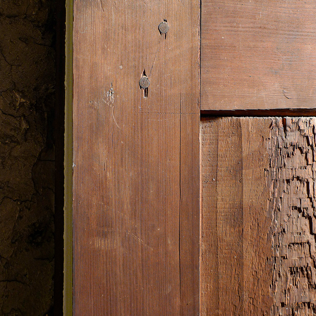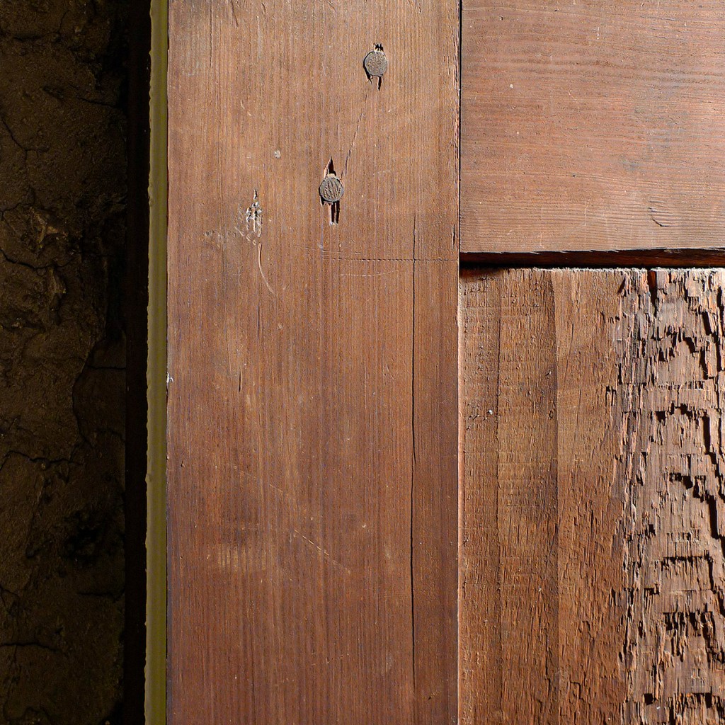 Another observation is that most/all of the joints on the back of the false door are open. With drawbored tenons, I’d guess that this was deliberate. Over cut the back of the joint so the front will fit dead tight. Saves time. Anyone who has made doors by hand can attest to the extra work involved in making both (front and back) tenon shoulders exactly coplanar and parallel with eachother