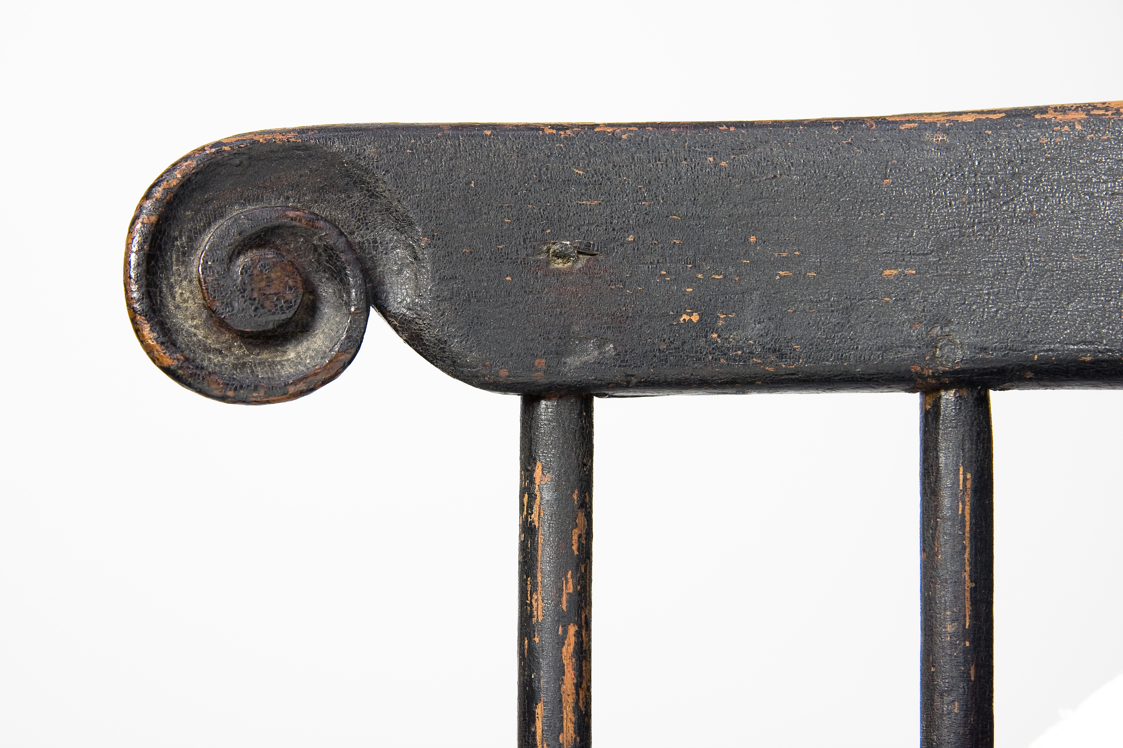 I recently purchased a brettstuhl/Windsor (on the Great Wagon Road in SW Virginia)that I believe was made in the Philadelphia area. I have been buying and collecting early American furniture for many years and have never seen this form. The crest rail and two spindle supports are very characteristic of early Philadelphia low back Windsors. The chair has an early 19th century grain painted surface over a red milk paint. I believe the chair is tulip poplar, at least the seat. The chair was made in the germanic manner without nails.
