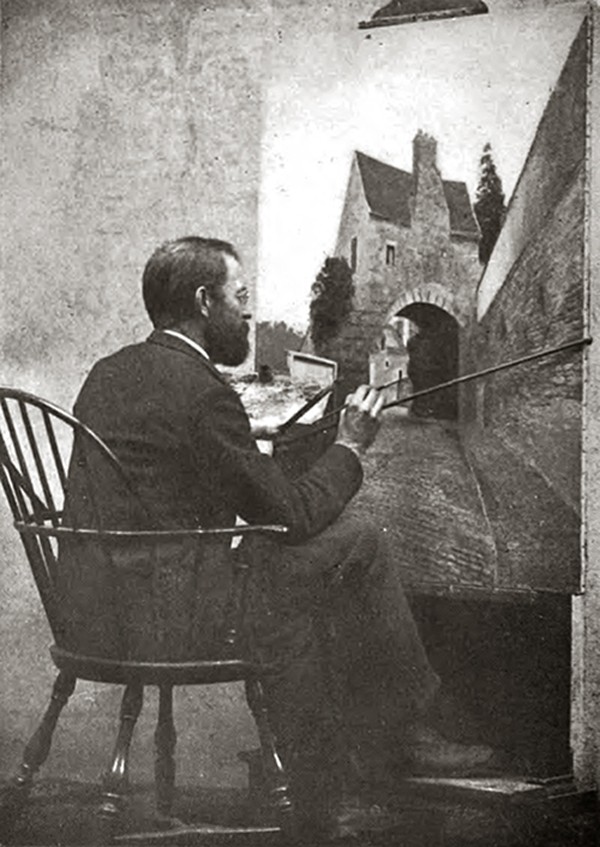 George Bacon Wood painting at his easel. In nearly every photograph of Bacon working in his studio he is seated on a Philadelphia Windsor chair. The Library Company of Philadelphia.