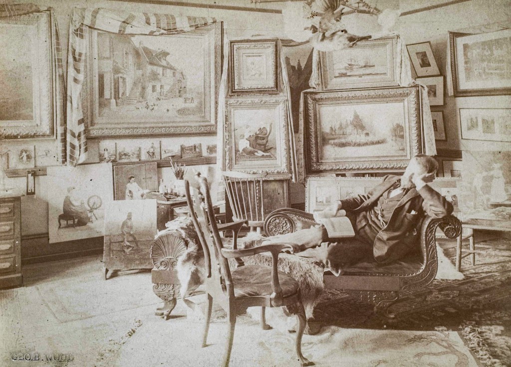 George Bacon Wood reading in his studio with his armchair nearby. The Library Company of Philadelphia.