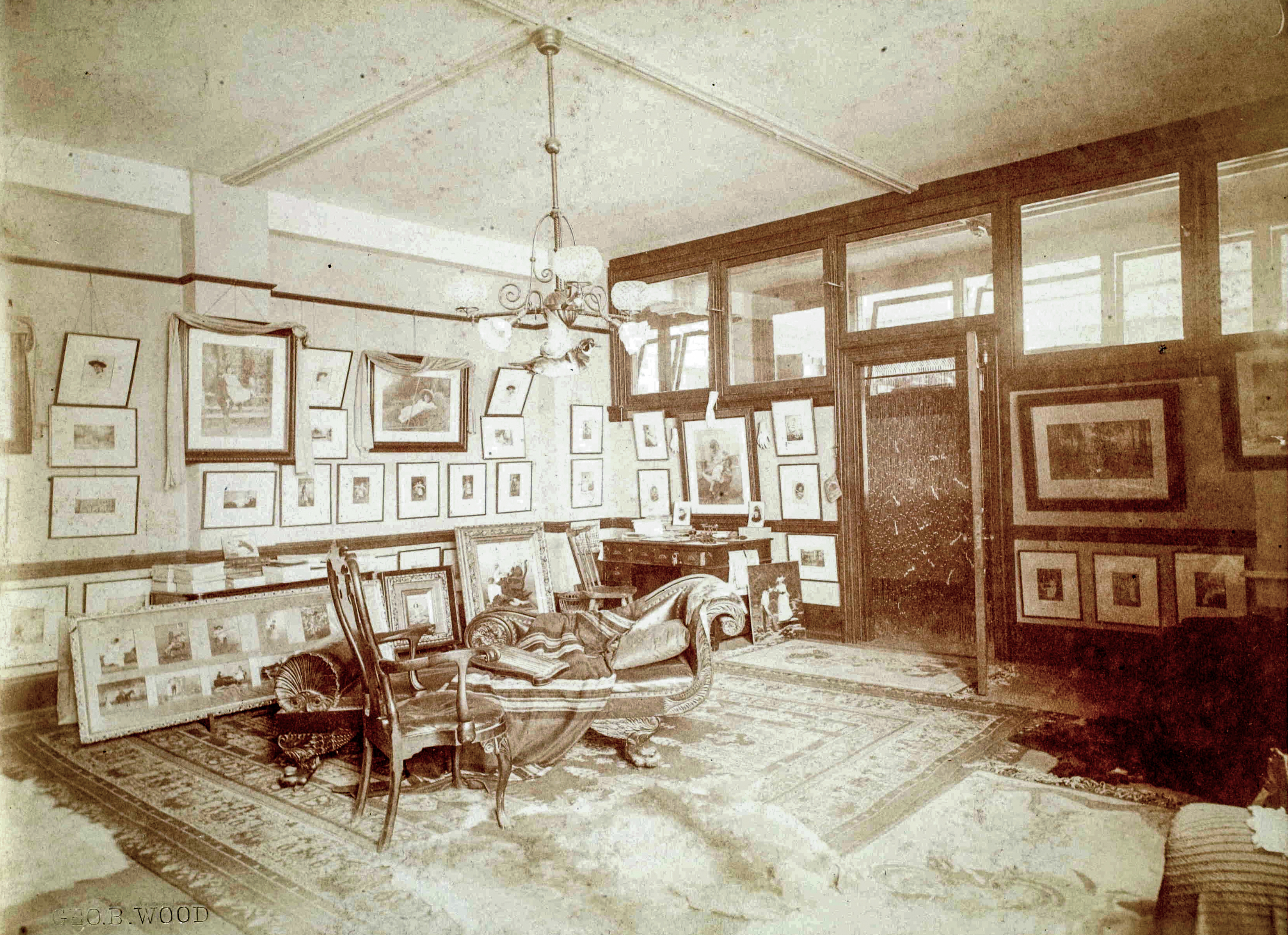 Another studio view showing many of his photographs matted and framed. The Library Company of Philadelphia.