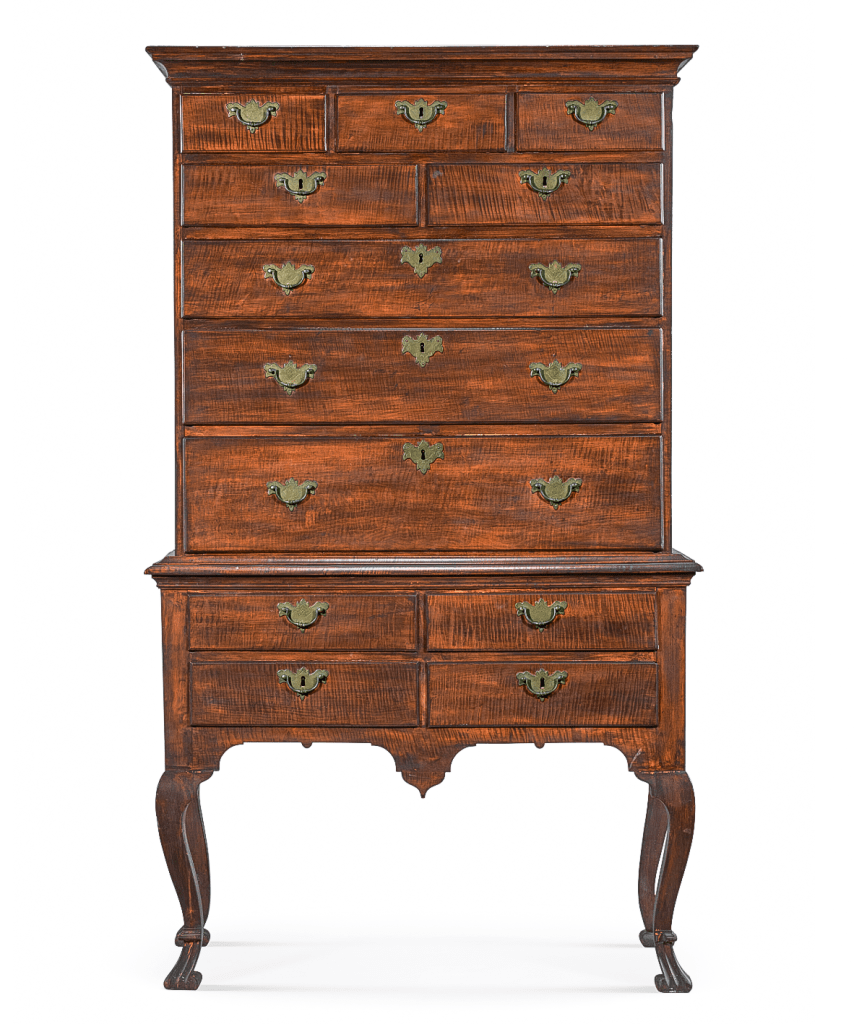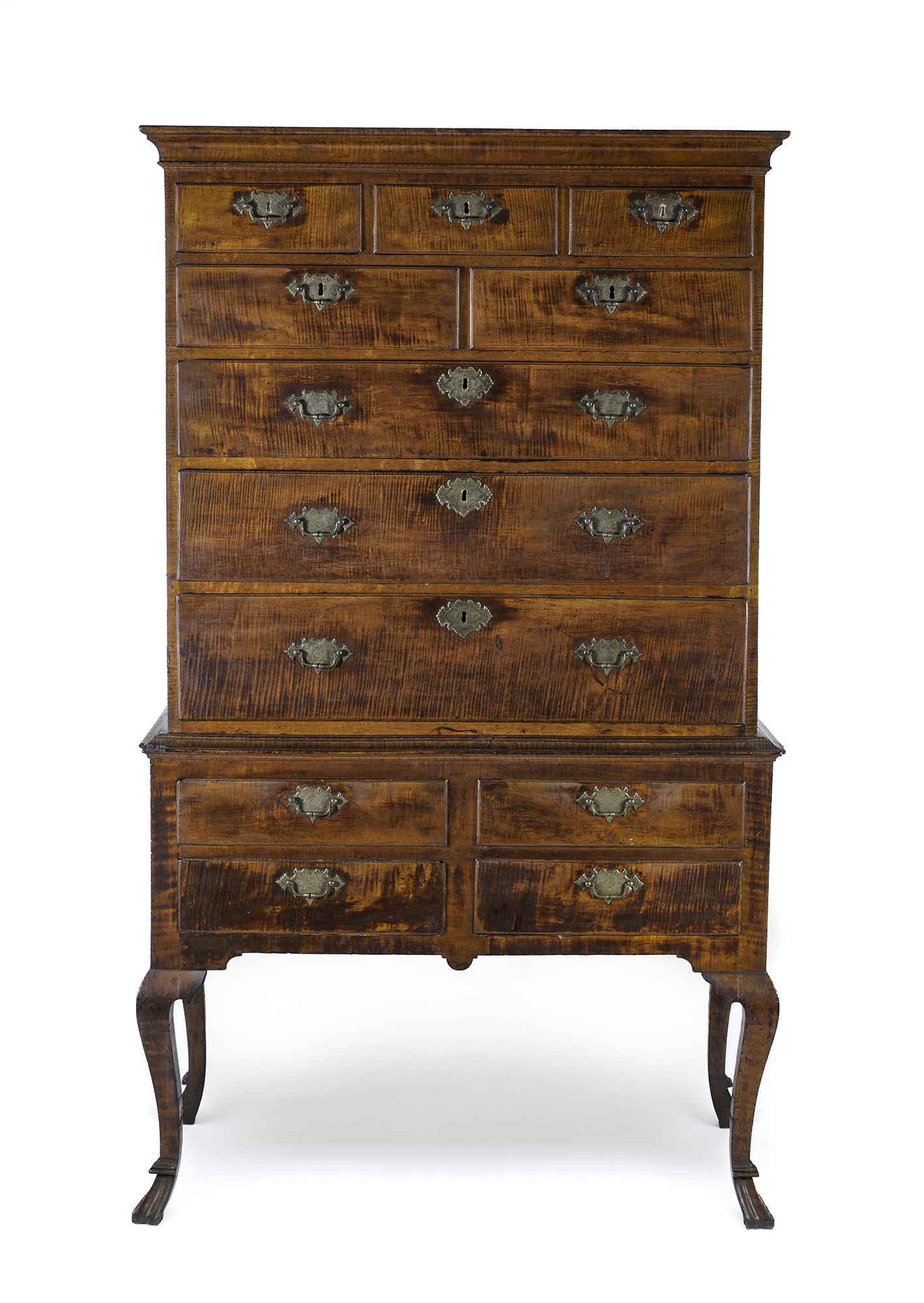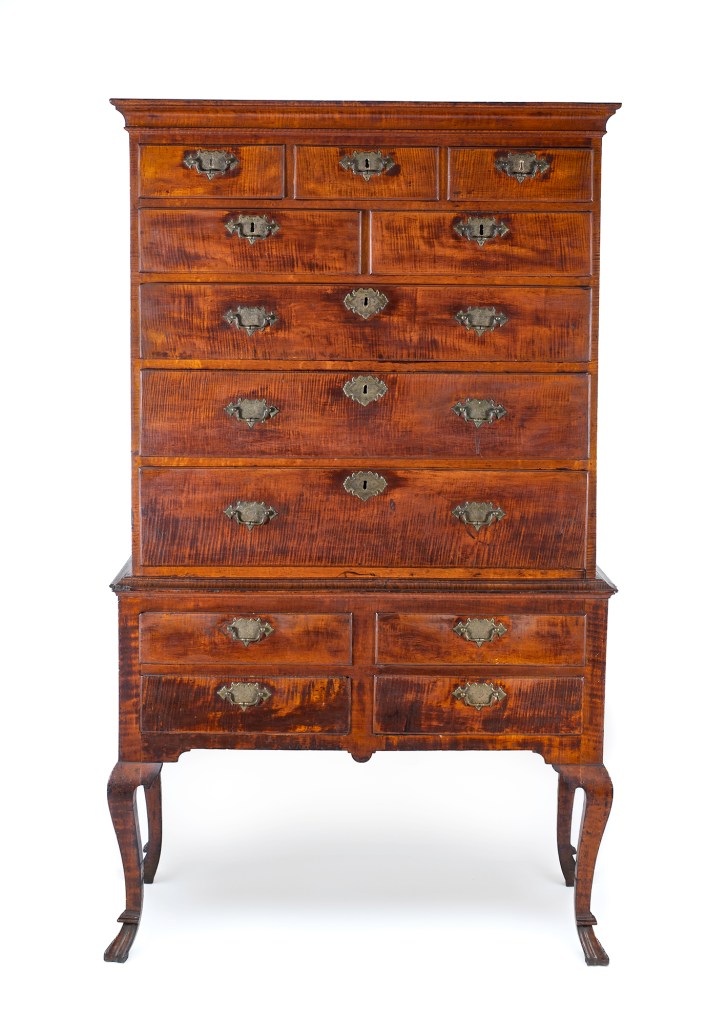 Down at Christie’s, lot 575 is a maple high chest made in Philadelphia c. 1745. I’ll be examining this chest to compare and contrast it to the maple high chest and dressing table at Stenton which I photographed this spring and I am continuing to research. It can be found here.