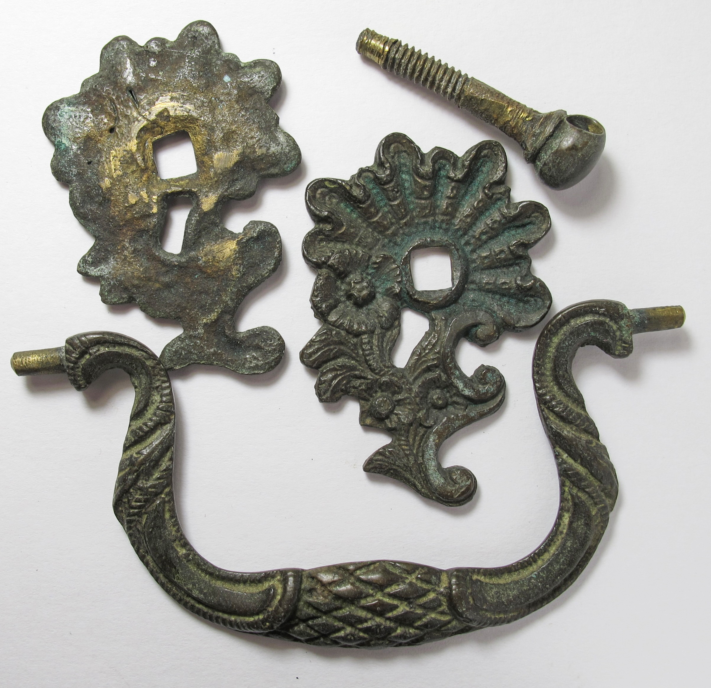 The color difference between the bail and rosettes is quite apparent in the image above. This was the case with all the pulls on the chest.