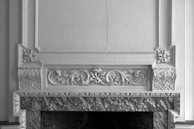 Mount Pleasant drawing room chimneypiece frieze after restoration. June 2011