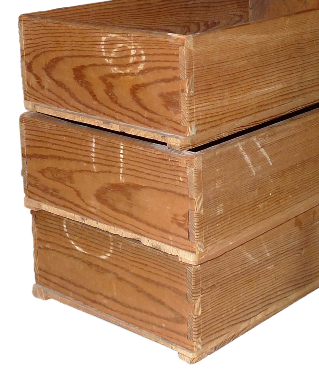 Drawer detail. High chest. Philadelphia, 1726. Made by John Head. Walnut, hard pine, Atlantic white cedar, gum, brass, iron.